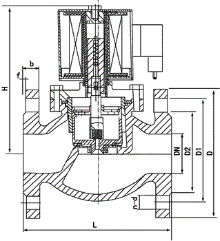 本閥為分步動(dòng)作直接先導(dǎo)式電磁閥,可根據(jù)斷電時(shí)所處開(kāi)、關(guān)狀態(tài)的不同,可分為常閉式電磁閥和常開(kāi)式電磁閥。常閉電磁閥,線圈通電后,銜鐵在電磁力作用下先帶動(dòng)副閥閥塞提起,主閥閥杯上的流體經(jīng)副閥流走,減少了作用在主閥閥杯上的壓力,當(dāng)主閥閥杯上的壓力減少到一定值時(shí),銜鐵帶動(dòng)主閥閥杯,并利用壓差而使主閥閥杯開(kāi)啟,介質(zhì)流通。線圈斷電后,電磁力消失,銜鐵因自重下落復(fù)位。同時(shí)依靠介質(zhì)壓力,主副閥得以緊密關(guān)閉。常開(kāi)電磁閥,線圈通電后由于吸力作用,動(dòng)鐵芯下移,把副閥閥塞壓下,副閥關(guān)閉,主閥閥杯內(nèi)壓力上升,當(dāng)壓力升到一定值時(shí),主閥閥杯的上下壓差一樣,由于電磁力作用,動(dòng)鐵芯推動(dòng)主閥閥杯下,壓緊主閥閥座,閥門(mén)關(guān)閉。線圈斷電時(shí),電磁吸力為零,副閥閥塞和動(dòng)鐵芯由于彈簧作用向上提起,副閥打開(kāi),主閥閥杯上的流體經(jīng)副閥流走,減少了作用在主閥閥杯上的壓力,當(dāng)主閥閥杯上的壓力減少到一定值時(shí),利用壓差把主閥閥杯推起,主閥打開(kāi),介質(zhì)流通